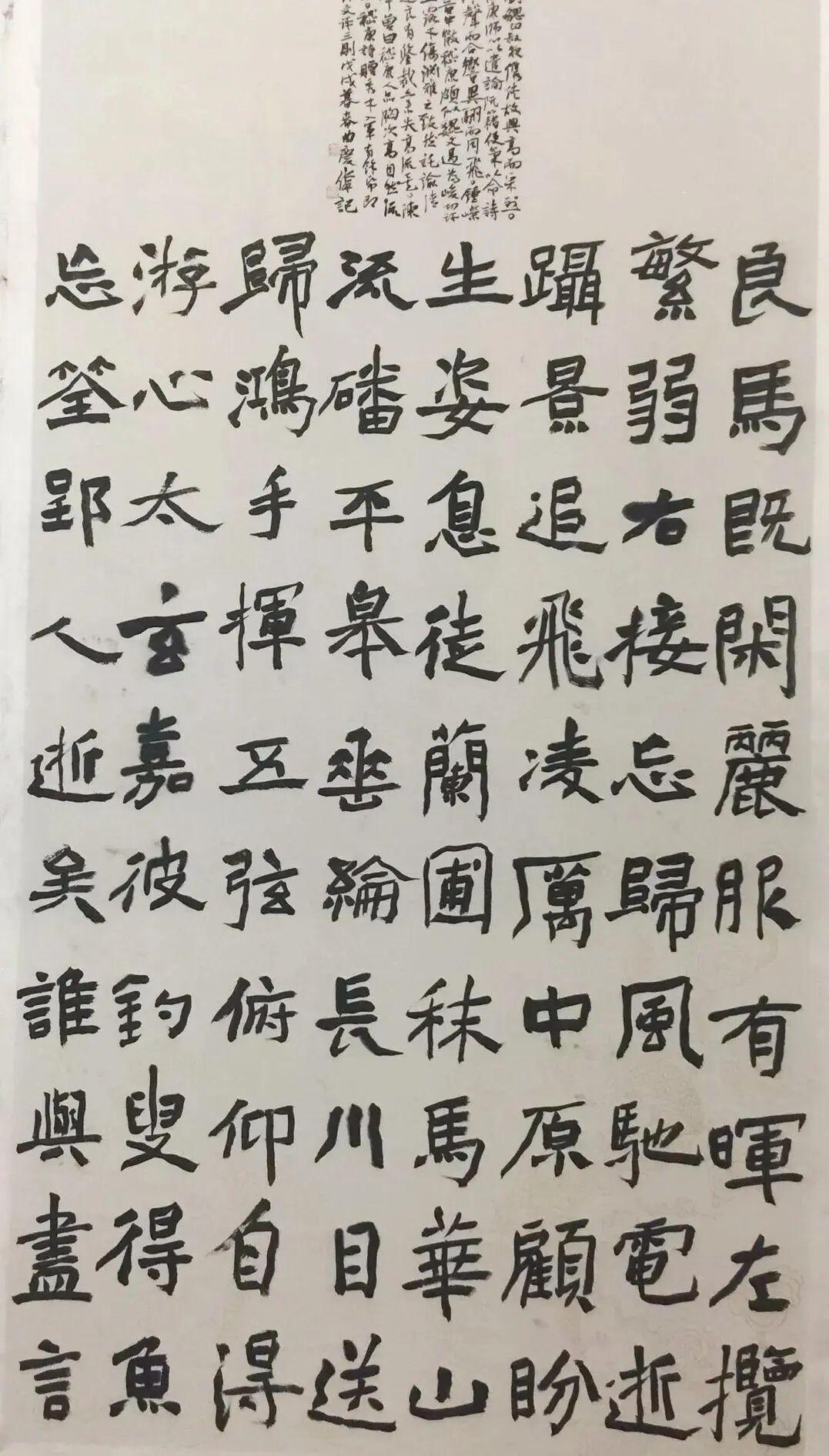 往时在展厅里,这作品真让东说念主轰动,字虽多,可每一个王人写得卓绝认真,用笔很厚爱,少许不暧昧。天然这是魏碑,但他写的时辰没刻意追求那种尖锐敏锐的作风,反而多了些和缓聪敏的嗅觉,看着很舒心。